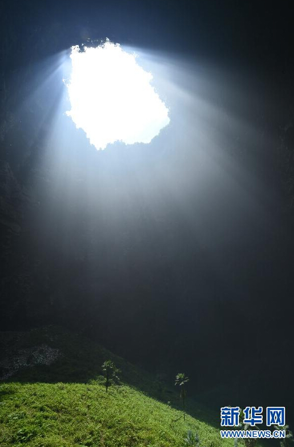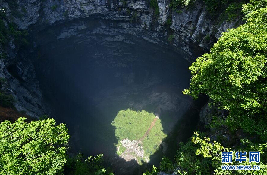 5月19日,阳光照进锣圈岩天坑。新华社发(杨顺丕 摄)