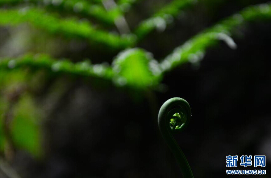 这是5月19日在锣圈岩天坑里拍摄的蕨类植物。新华社发(杨顺丕 摄)