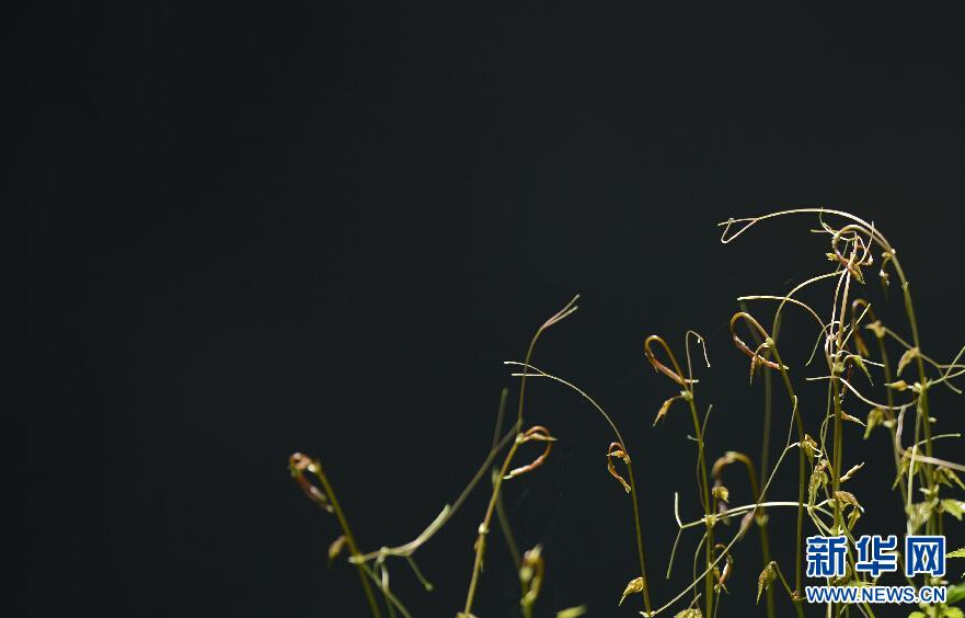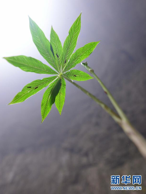 5月19日,锣圈岩天坑底部的藤蔓植物迎着太阳生长。新华社发(宋文 摄)