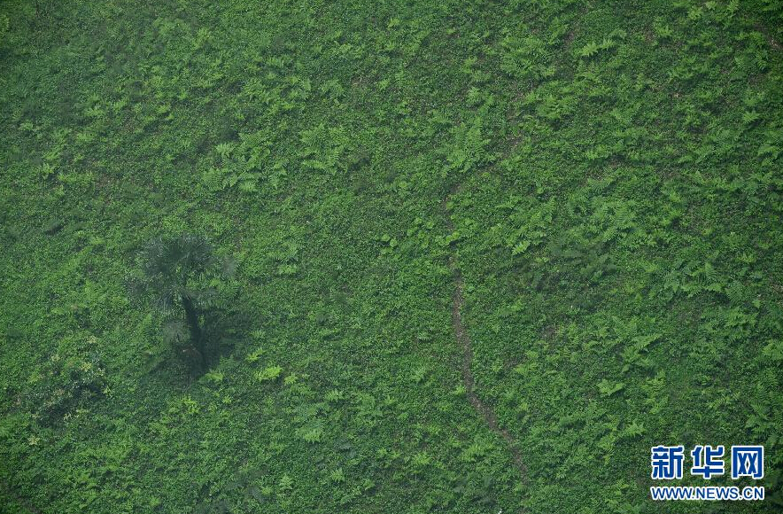 这是5月19日从空中拍摄的锣圈岩天坑里的植被。新华社发(宋文 摄)