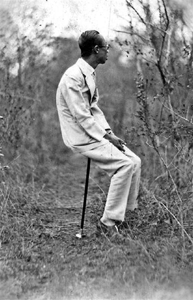 坐在文明棍上的溥仪