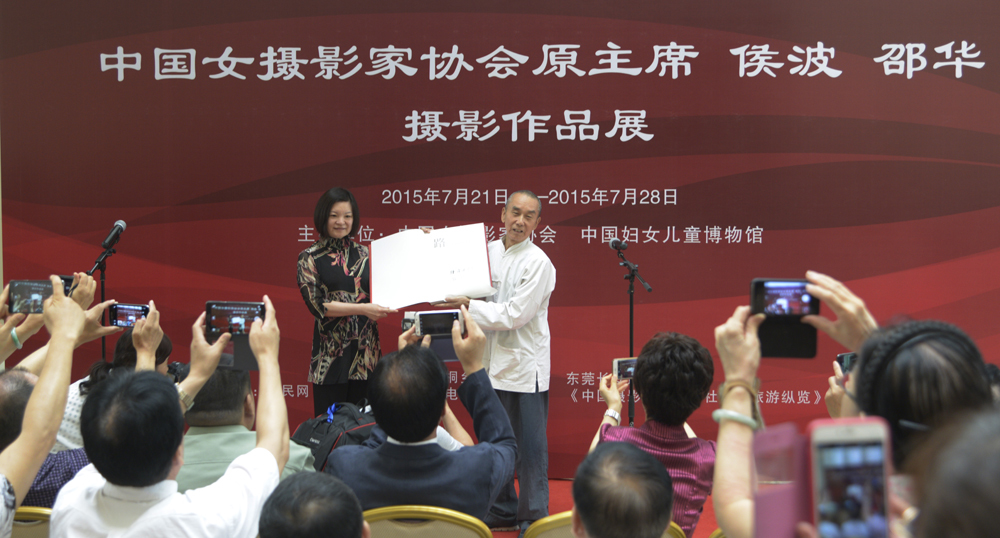 中国女摄影家协会原主席侯波、邵华摄影作品展于2015年7月21日上午10时在中国妇女儿童博物馆拉开帷幕。本次摄影作品展由中国女摄影家协会、中国妇女儿童博物馆主办,桐乡市人民政府、东莞长安影像中心协办,人民网、中新网、央视网络电视台书画频道、《中国摄影家》杂志社、《旅游纵览》杂志社作为支持单位。开幕式由中国女摄影家协会驻会副主席、秘书长吕静波主持,出席开幕式的领导和嘉宾有:中国文联党组成员、副主席、书记处书记李前光,全国妇联书记处书记焦扬,中国女摄影家协会名誉主席侯波长子徐建林,中国女摄影家协会原主席邵华将军之子、解放军军事科学院战略部副部长、全国政协委员毛新宇少将,中国摄影家协会副主席、《中国摄影家》杂志社总编李树峰,中国摄影家协会副主席张桐胜,中国摄影家协会党组成员、秘书长高琴,中国摄影艺术学会主席杨元惺,解放军军事科学院原副院长钱海皓中将,中国军事文化研究会会长程宝山中将,中国摄影著作权协会副主席解海龙,中国摄影著作权协会总干事林涛,全国公安摄影家协会主席冯凯文,中国女摄影家协会副主席冯凯旋、刘滨、李晓英,中国女摄影家协会副秘书长赓熙伟、黄晓丽,中国妇女儿童博物馆副馆长季文燕,中国女画家协会主席孔紫,嘉宾崔海教先生,中央电视台原副总编辑、央视国际画院院长赵立凡,北京摄影器材城董事长朱秀英,中国摄影艺术学会副主席张小苏,中国女摄影家协会原主席邵华将军妹妹张少林,中华人民共和国外交部行政司一秘徐峰,中国旅游协会妇女旅游委员会执行会长熊玉梅,欧美同学会副会长端木美,中国女检察官协会秘书长、高级检察官付侃,中国女法官协会秘书长曹巍,中国妇女活动中心副主任孙惠珍,欧美同学会妇女委员会副主任于德芬,中国女市长协会原副主席、秘书长张学斌等。中国女摄影家协会主席王瑶,因公事外出未能参加开幕式,她向各位来宾表示感谢,同时预祝摄影作品展圆满成功!