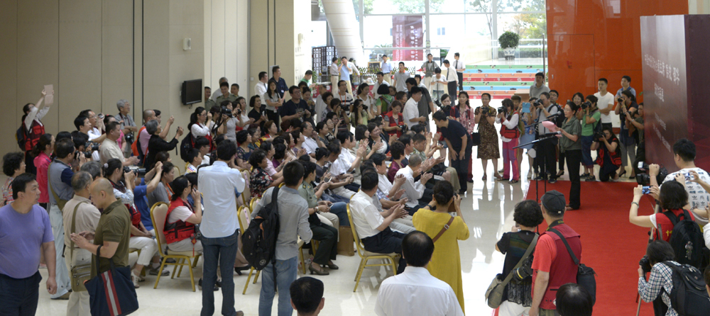 在开幕式上,中国文联党组成员、副主席、书记处书记李前光,全国妇联书记处书记焦扬,中国女摄影家协会名誉主席侯波长子徐建林,中国女摄影家协会原主席邵华将军之子,解放军军事科学院战略部副部长、全国政协委员毛新宇少将先后致辞。此外,徐建林先生将侯波、徐肖冰于1989年出版的摄影画册《路》赠予中国妇女儿童博物馆,画册由两位老摄影家亲笔签名。毛新宇少将向中国妇女儿童博物馆捐赠邵华将军摄影画册及个人出版的《爷爷毛泽东》和《母亲邵华》签名书籍,中国妇女儿童博物馆副馆长季文燕接受捐赠。随后,中国女摄影家协会驻会副主席、秘书长吕静波感谢侯波长子徐建林为本次展览捐赠60幅侯波徐肖冰的精放作品并赠送协会收藏,感谢毛新宇少将为展览捐赠邵华将军摄影画册,感谢桐乡市人民政府为邵华将军展览制作作品,感谢东莞长安影像中心为展览制作背景版等,感谢北京摄影器材城董事长朱秀英为侯波、邵华摄影展捐赠志愿者服装,感谢长期以来中国妇女儿童博物馆对中国女性摄影事业的支持。感谢今天到场的各位领导及摄影家们,有你们的支持和鼓励,中国女摄影家协会的明天会更家辉煌!最后,嘉宾及来自全国各地200多名女摄影家参观了摄影作品展。
