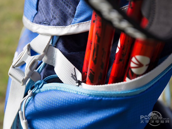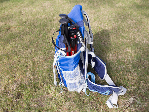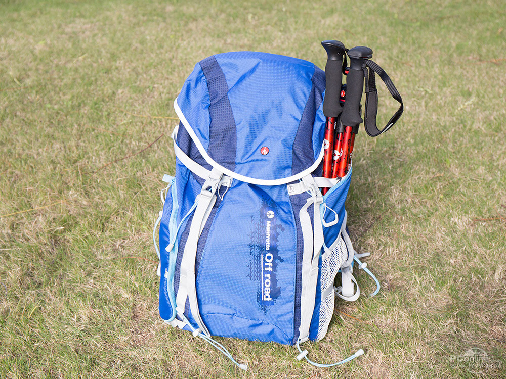 曼富图OFFROAD系列摄影装备组合特写,脚架与登山杖都能稳固地放到背包侧面