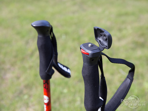打开胶盖,就能发现另一副登山杖用于固定相机的云台,同样无需快装板
