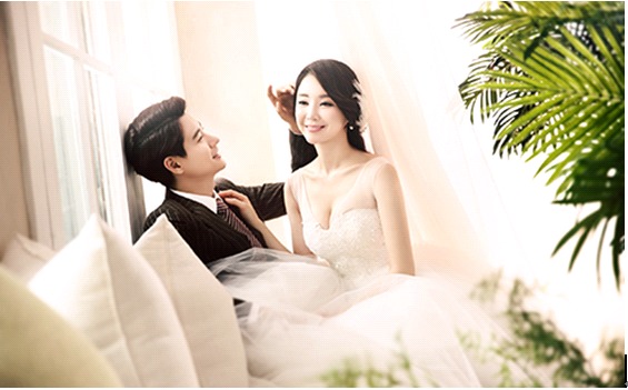 韩式唯美婚纱照的服装选择,当然首选韩版婚纱。韩版婚纱的优点在于垂感好、线条流畅,如果是传统的韩国婚纱主要是腰装比较特殊,胸部束紧,胸部自然下垂,适合遮掩女性的身材缺陷。而现在受工作室青睐的韩式婚纱照面料比较奢华,婚纱上多镶有珍珠、钻饰,但款式并不复杂,最好带有很长的拖尾。当然,色彩清爽、款式简单的韩版时尚服饰也是不错的选择,此外,精致考究的古代宫廷韩服也会给你带来不一样的美。
