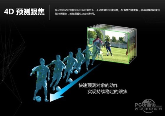 索尼微单?a6000带有179个相位检测自动对焦点,再加上25个对比度检测自动对焦点,整个画面几乎都被对焦点覆盖了,如此高的对焦点密度,没有任何其他相机能达到。而且最新的4D对焦功能通过优化的自动对焦算法为目标对象的下一个动作做出快速预测。简单地说,通过监测运动物体的位置的速度,4D对焦系统能预测物体的运动轨迹,从而在最短的时间内完成对物体的对焦。AF跟焦性能更强,移动较快的对象也能持续跟焦,并且自动排除突然进入画面内的物体,保持始终只针对某一物体对焦,助您把握住决定性瞬间。