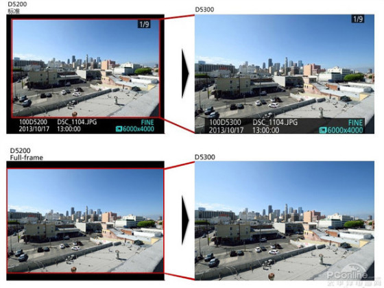 尼康D5300全新的3.2英寸、103.7万像素LCD显示屏,宽高比从4:3变为3:2,显示图像画面占屏幕比例更高,可以全屏显示。另外取景器从过去的78%放大倍率增加到了82%的放大倍率,整体面积增加了11%,观看更舒适,没有了原来入门单反相机光学取景器观看偏小的问题。