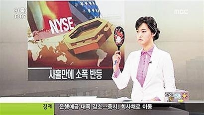 韩国MBC电视台《今日新闻》在播出江原道森林火灾时,火灾现场资料画面突然转切到调整画面的场面。尽管画面随即切回直播厅,但当时女主播李政旻完全不知情地照着镜子。她事后反应过来,便立刻把镜子放下来开始播报关于“纽约股市小幅回升”的新闻。