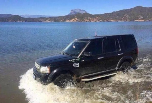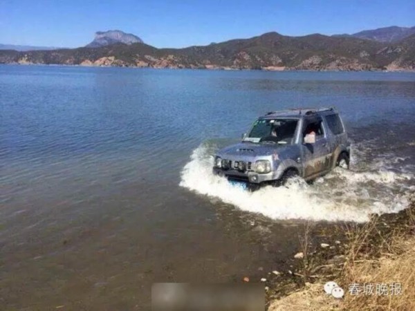 游客开越野车在泸沽湖洗车冲浪 脑残也开始任