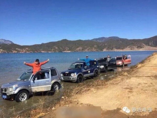 游客开越野车泸沽湖洗车冲浪遭谴责