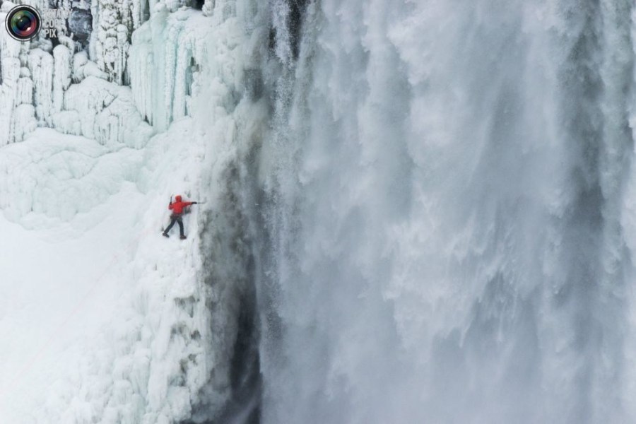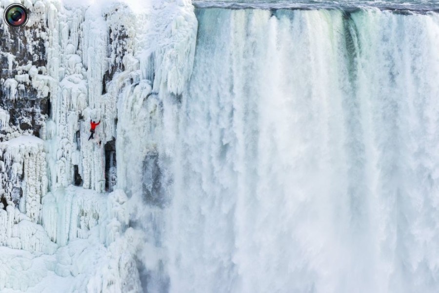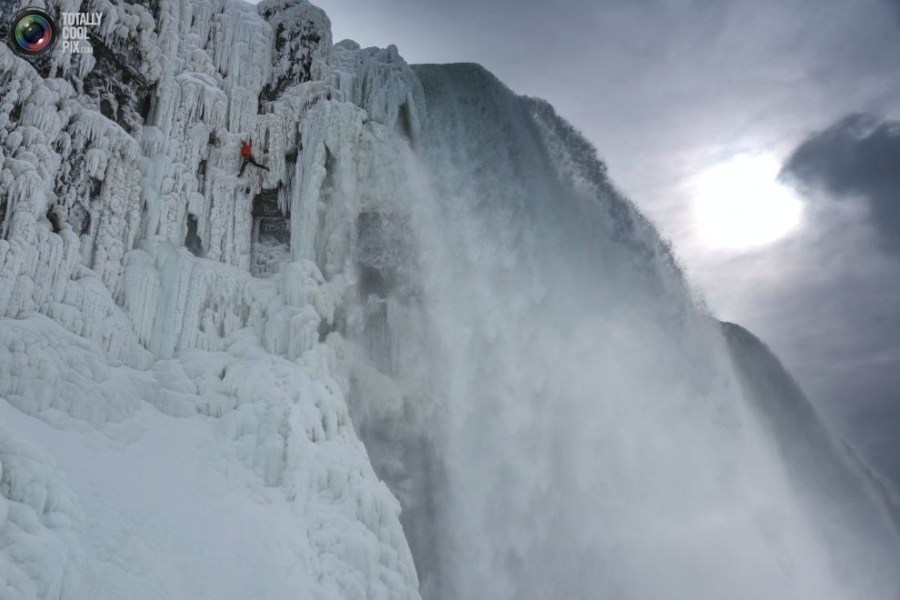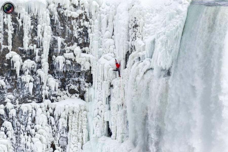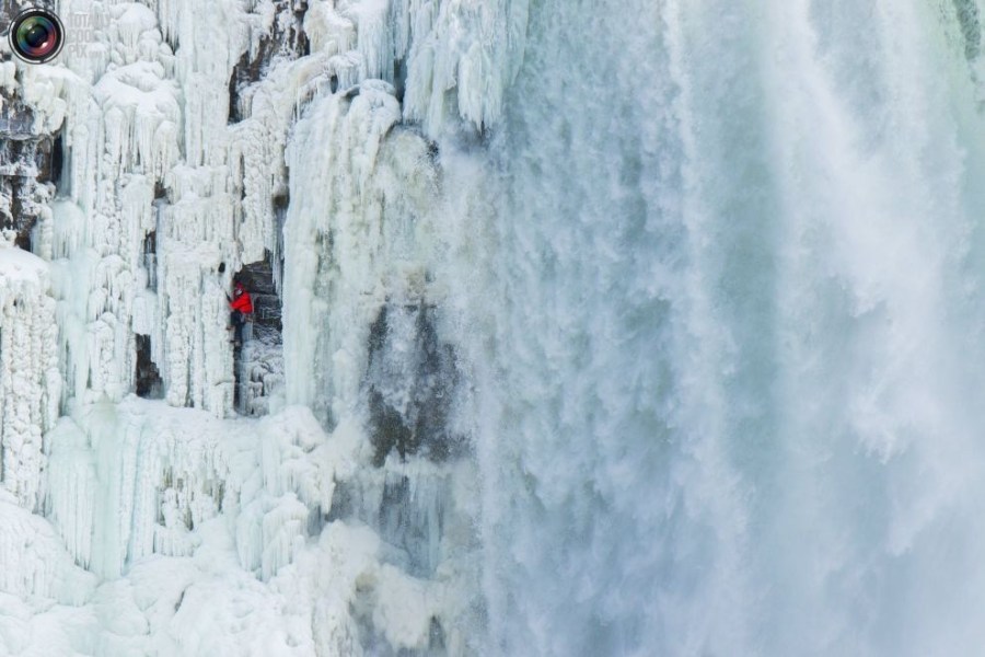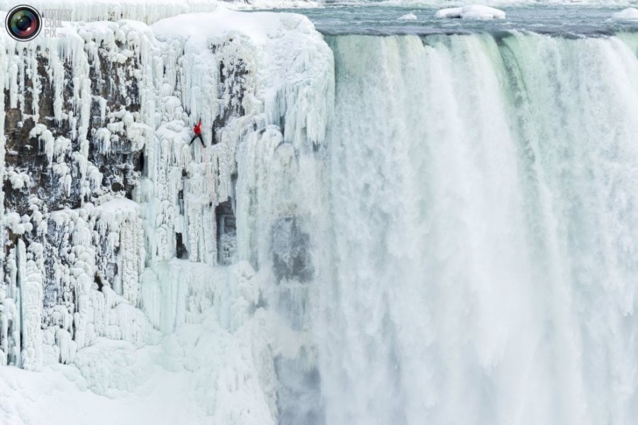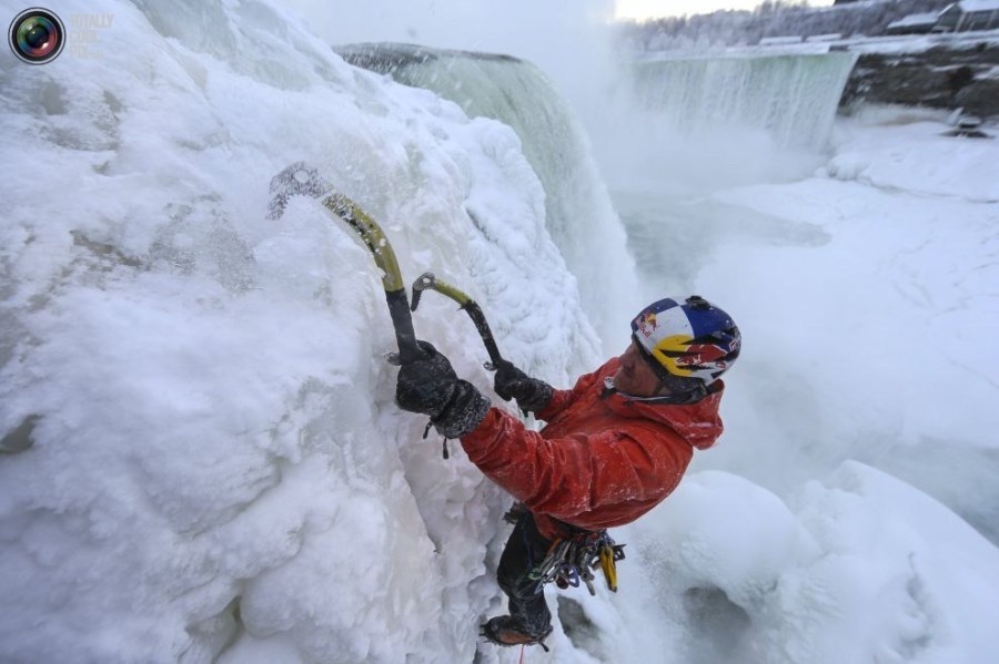 06:2015年1月27日,美国,纽约,尼亚拉加大瀑布,威尔加德正在攀爬冰封的红牛瀑布。