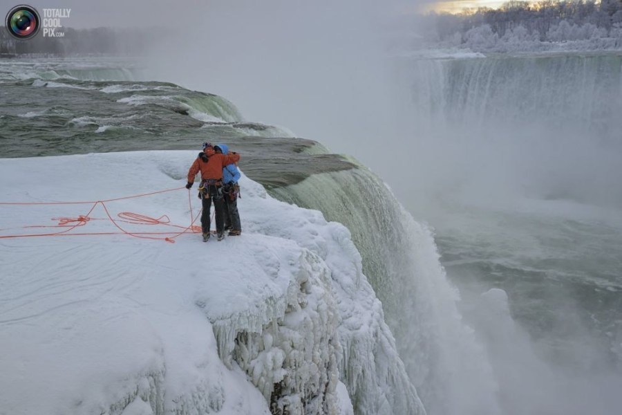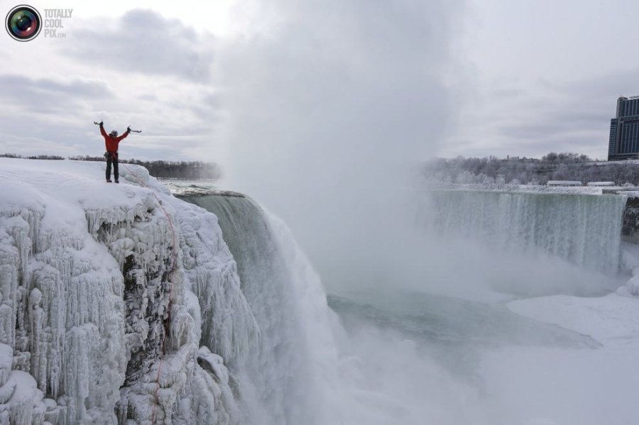 10:在登上尼亚拉加大瀑布后,威尔加德的身上已经结了一层冰。