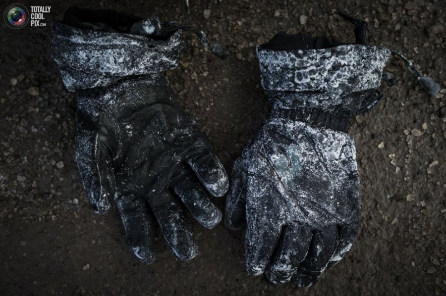 16:在登上尼亚拉加大瀑布后,威尔加德的手套上已经结了一层冰。