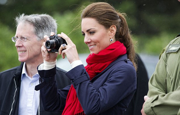 凯特是一位敏锐的摄影者,她过去曾被拍到使用佳能数码相机。上图:2010年,加拿大,凯特为直升机演戏中的威廉王子拍照。