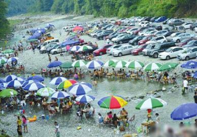 避暑游客挤爆都江堰虹口。(图据华西都市报)