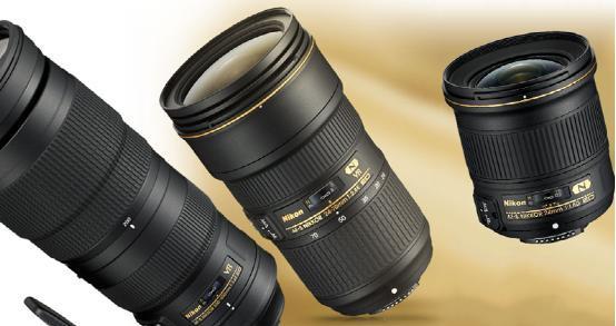 AF-S 24-70mm f/2.8E ED VR采用9组12片光学结构,含2片非球面镜片和2片ED镜片,7叶片光圈,最近对焦距离0.23m,最高放大倍率0.2倍,滤镜口径72mm,重量为355g。最后的AF-S 200-500mm f/5.6E ED VR是是一款2.5倍超远摄变焦镜头,支持200-500mm的焦距范围,恒定最大光圈为f/5.6,采用ED玻璃镜片。
