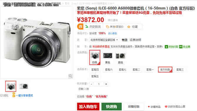 ↑图:最快对焦微单 索尼A6000套机报价4700元_三秦