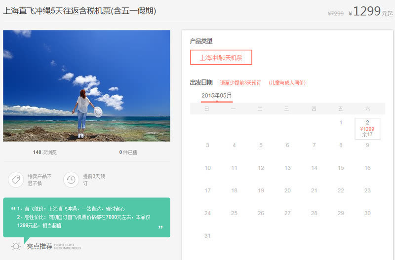 穷游网机票 穷游:上海直飞冲绳5日机票往返含税1299元