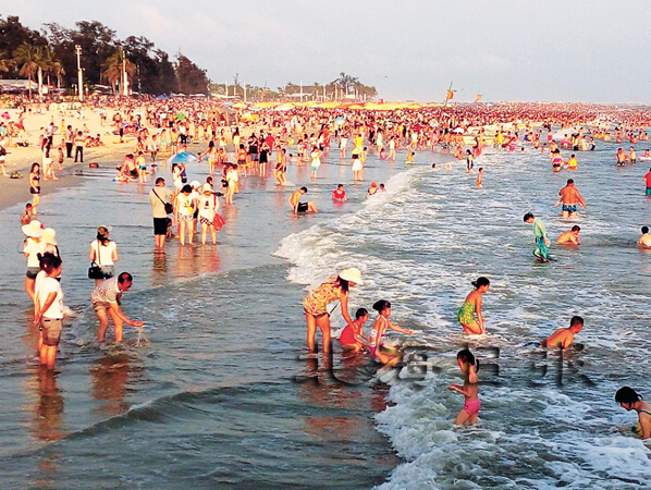 在银滩旅游景区,记者见到停车场停满了广东等外地车牌的小车,还有多辆旅游大巴车停放在园区外的公路两旁。“我们总共有54名清洁工,三班倒在景区轮流做清洁,每隔15分钟对沙滩进行一次保洁。”景区负责人介绍说,“五一”小长假期间,进入银滩的游客超过16万人。银滩景区专门在节前完善了基础设施,对园林景观进行了优化,对员工进行了再培训,进一步提高服务质量。