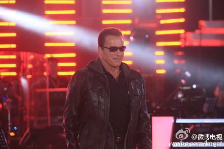 观众一下子就沸腾了。施瓦辛格之所以来《中国好声音》现场,是因为他主演的《终结者5》将于8月23日上映。除了在录制现场跟大家互动外,他还在场外骑着拉风的哈雷摩托车,秀了一把他在电影中的形象。