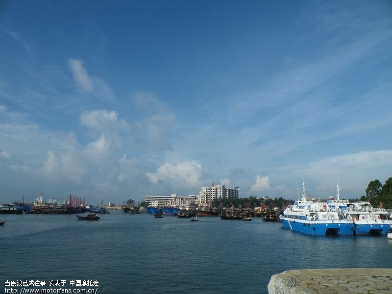 照片是北海客运码头上看到的景象,上涠洲岛就是乘坐画面右边的这种航船。