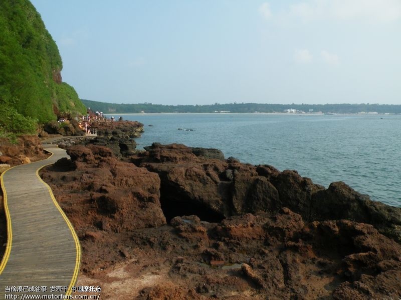 渔船实在太晕来,我们5人放到了4个,没钓多久就坚持不住了,拎着几条颜色鲜艳的小鱼打道回府。晚上大家都去抓螃蟹,,晚上退潮后拿上手电筒,提上一个桶,戴上手套或借老杨家的抓螃蟹专用镊子,步行到离石盘河渔庄只有5分钟路程的海滩不一会就抓了一大桶,最可爱的是老杨家的黑狗,叫一声他的名字,他就带着你穿过村庄到海边去,完了叫他回家,他又带着你穿过村庄回到家,实在是个非常聪明的导航犬。第二天去的第一个景点是火山公园,因为涠洲岛是很多很多年前火山喷发形成的岛屿,所以火山公园的地貌比较奇特,特别适合人像摄影.建议女士穿长裙带一两条纱巾草帽等道具,当然前提是同行中要有摄影高手,火山公园有近千米的台阶还有长长的怪石林立的海岸线,最好不要穿高跟鞋,除非是体力强人...