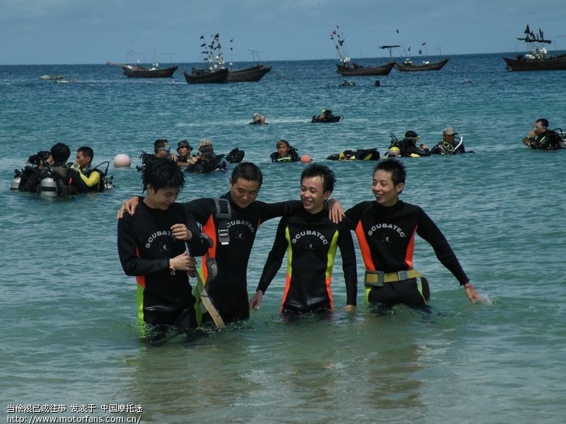 由于时间关系我们此行安排得比较匆忙,上岛后直接叫司机大哥拉我们去石螺口潜水....这里的潜水都是私人运营的,谈不上正规,过程也不是很好玩,至于价格是可以随意砍价的,一般是在140左右,潜水过程中教练一带二,至始至终都是抓住你的衣领不曾放开,被教练拎着在海里游荡半个小时,途中还不时的浮出水面忽悠你在水下照相,照相的价格是270一个胶卷,还不负责冲洗照片。虽然如此,我们仍对海水的清澈和海底的美妙赞不绝口。